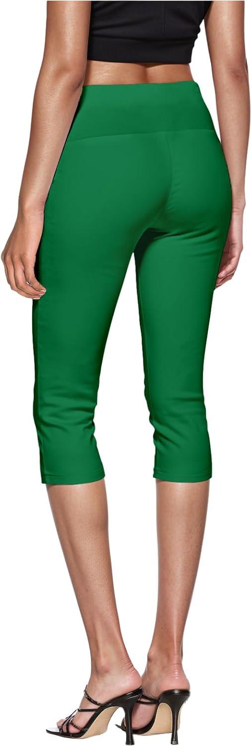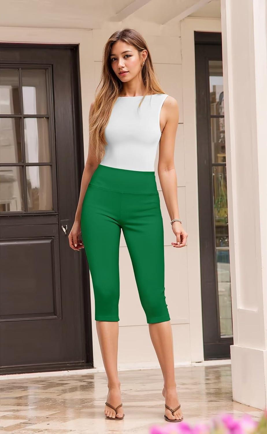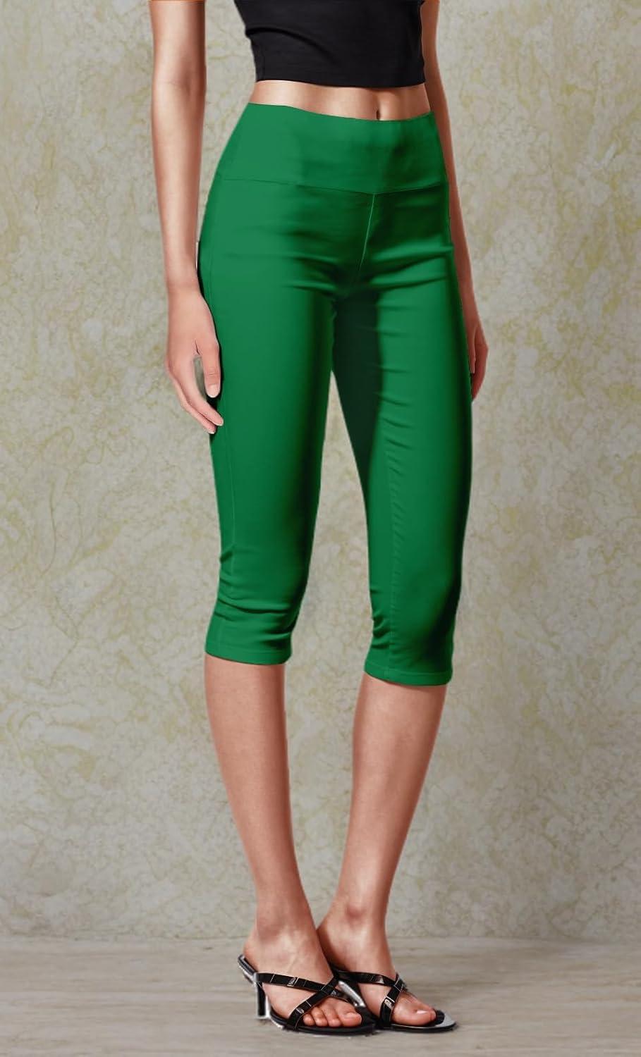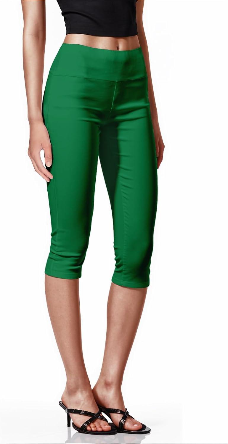 Hybrid & Company Womens Super Stretch Causal Pull On Millennium Twill Bermuda Shorts(Capri-kelly Gree)