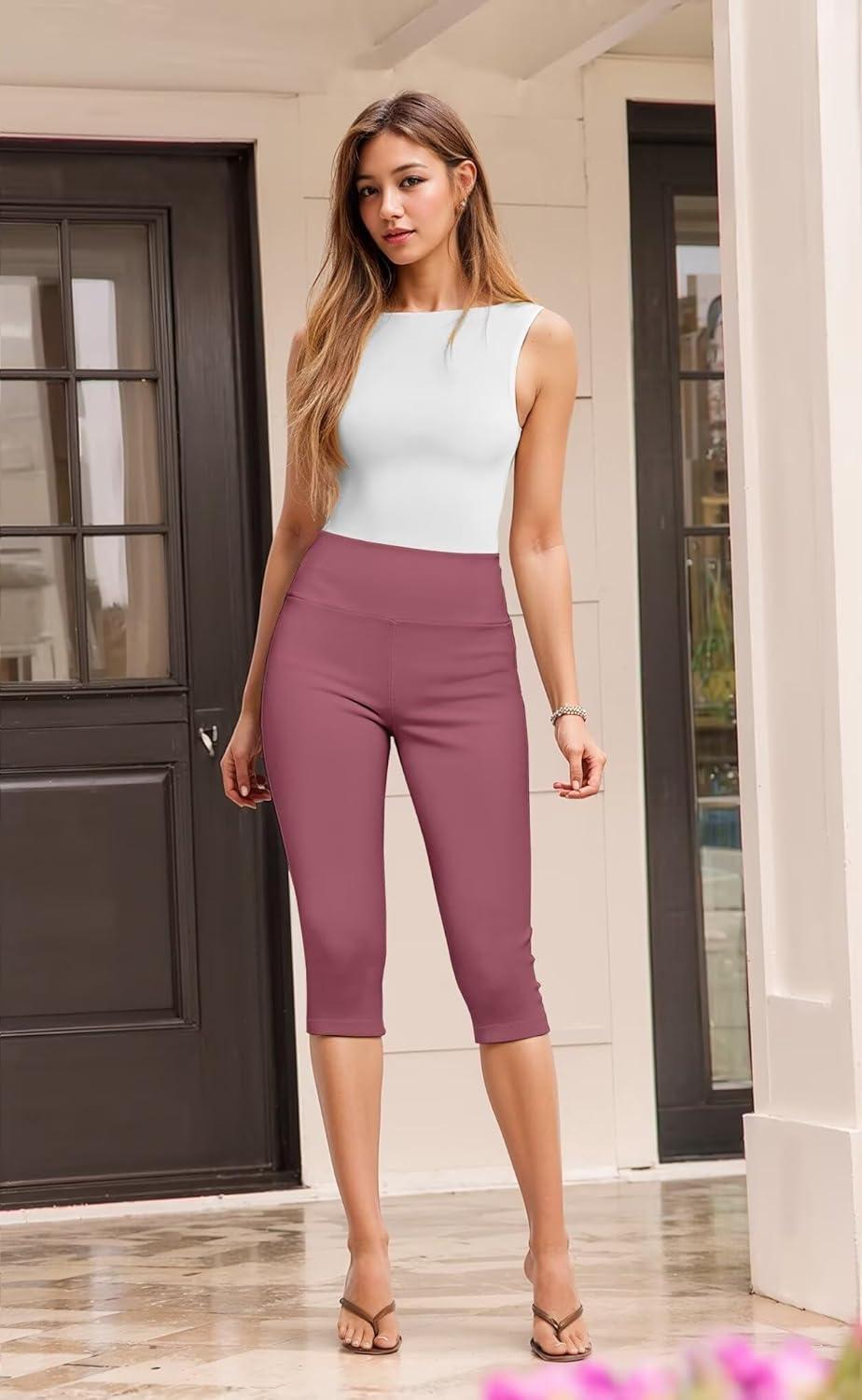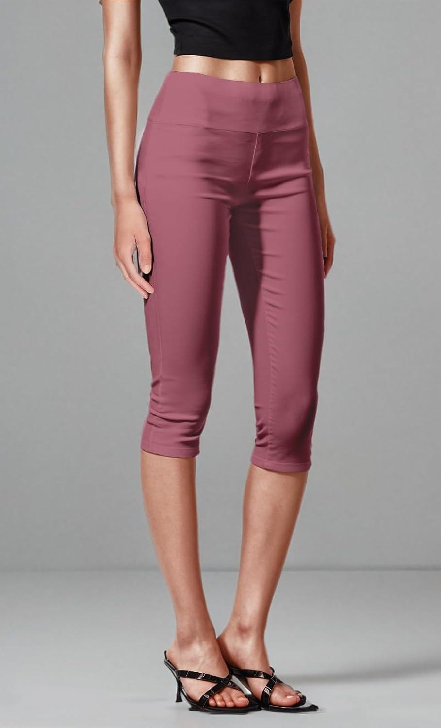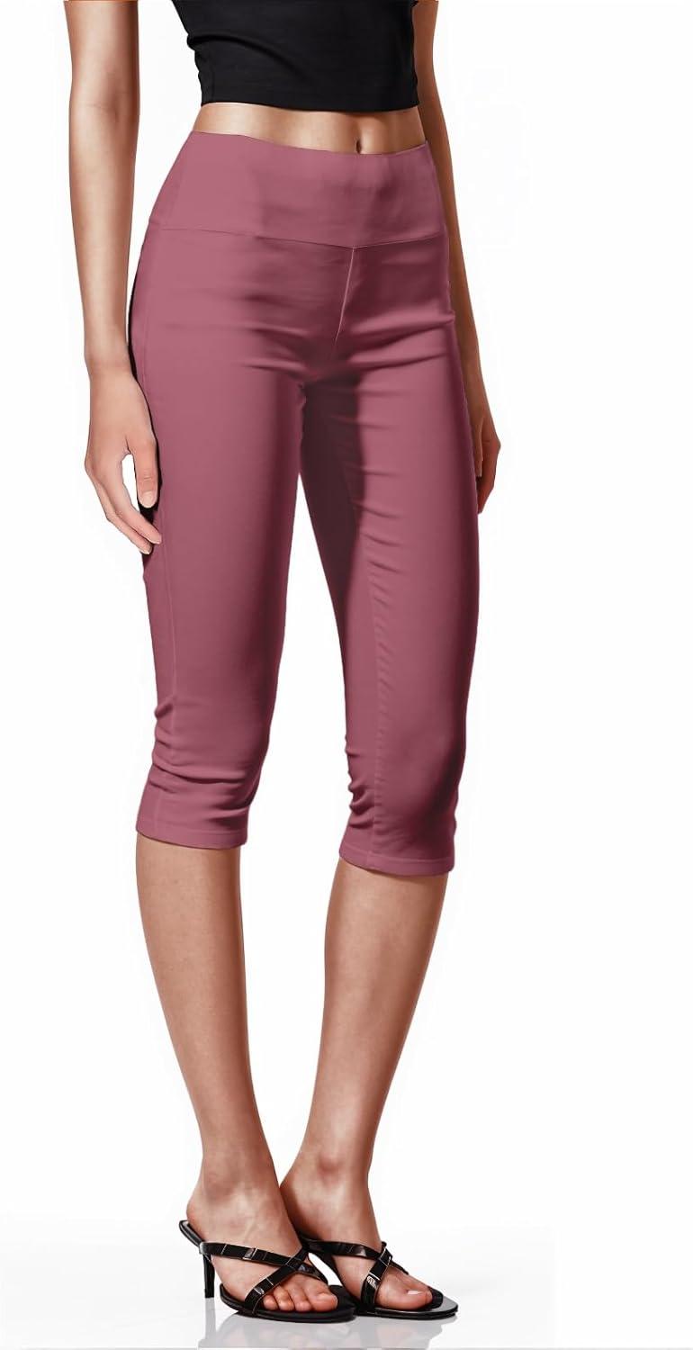Hybrid & Company Womens Super Stretch Causal Pull On Millennium Twill Bermuda Shorts(Capri-mauve)