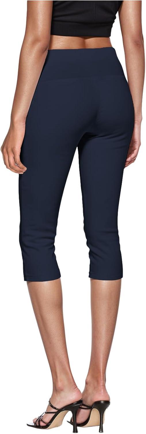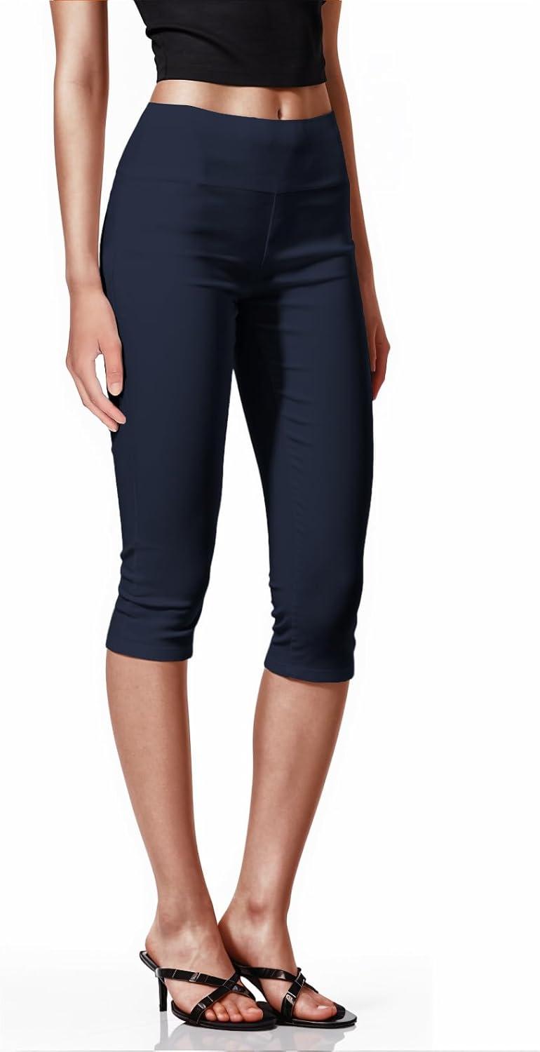 Hybrid & Company Womens Super Stretch Causal Pull On Millennium Twill Bermuda Shorts(Capri-navy)