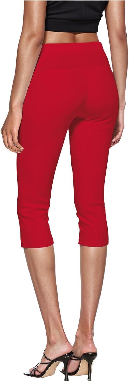 Hybrid & Company Womens Super Stretch Causal Pull On Millennium Twill Bermuda Shorts(Capri-red)