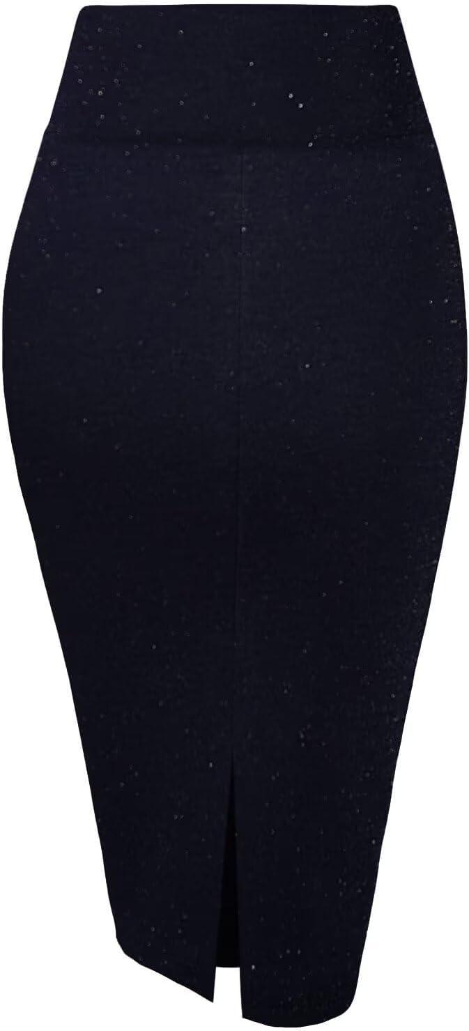 Hybrid & Company Women’s Techno/Scuba Stretchy Office Pencil Skirt Made in USA(2127-navy)