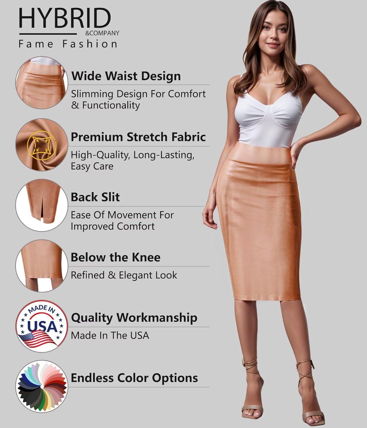 Hybrid & Company Women’s Techno/Scuba Stretchy Office Pencil Skirt Made in USA(Copper)