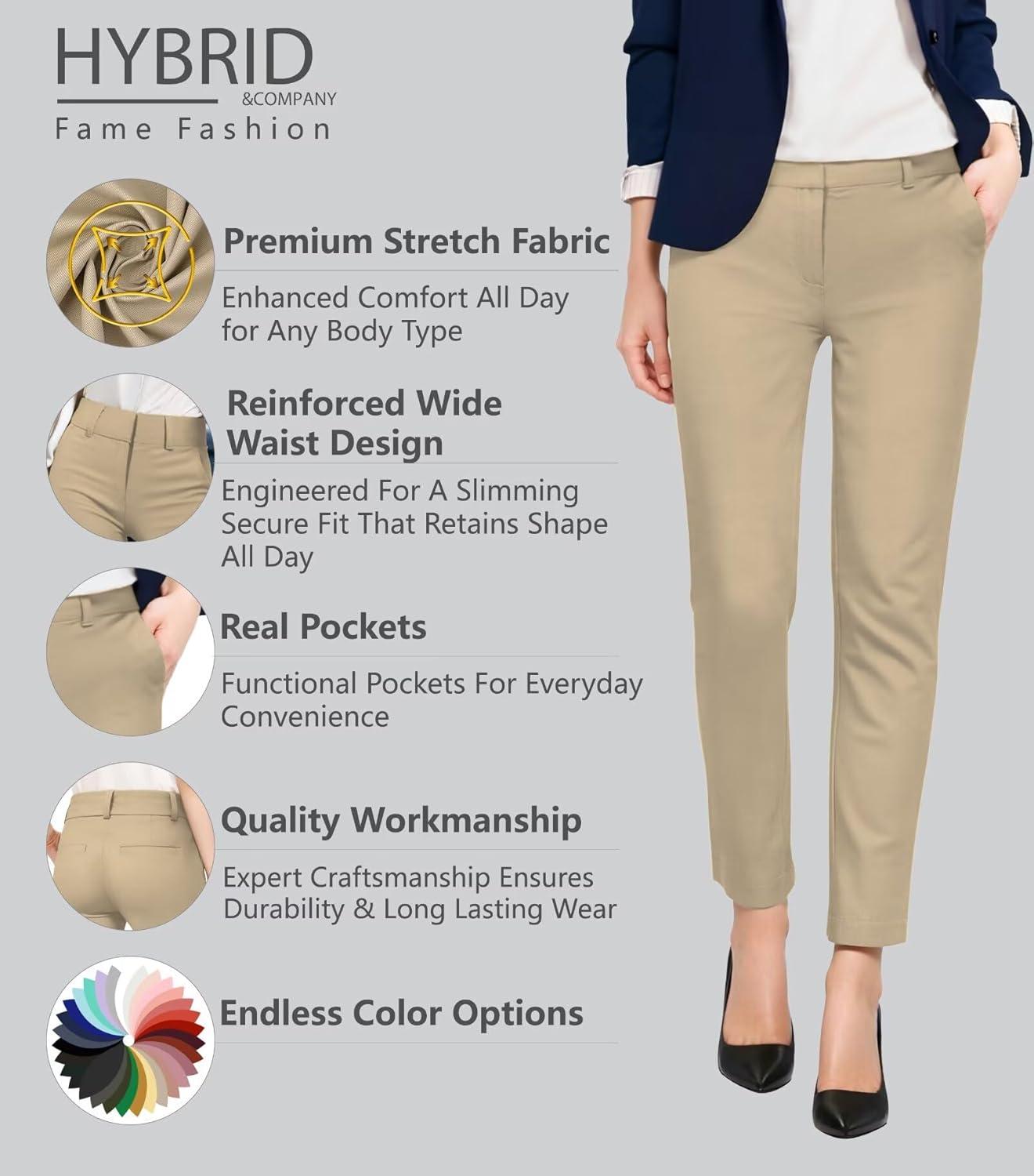 Hybrid & Company Womens Ultra Comfy Stretch Slim Fit Trousers Chino Pants with Pocket(Khaki)