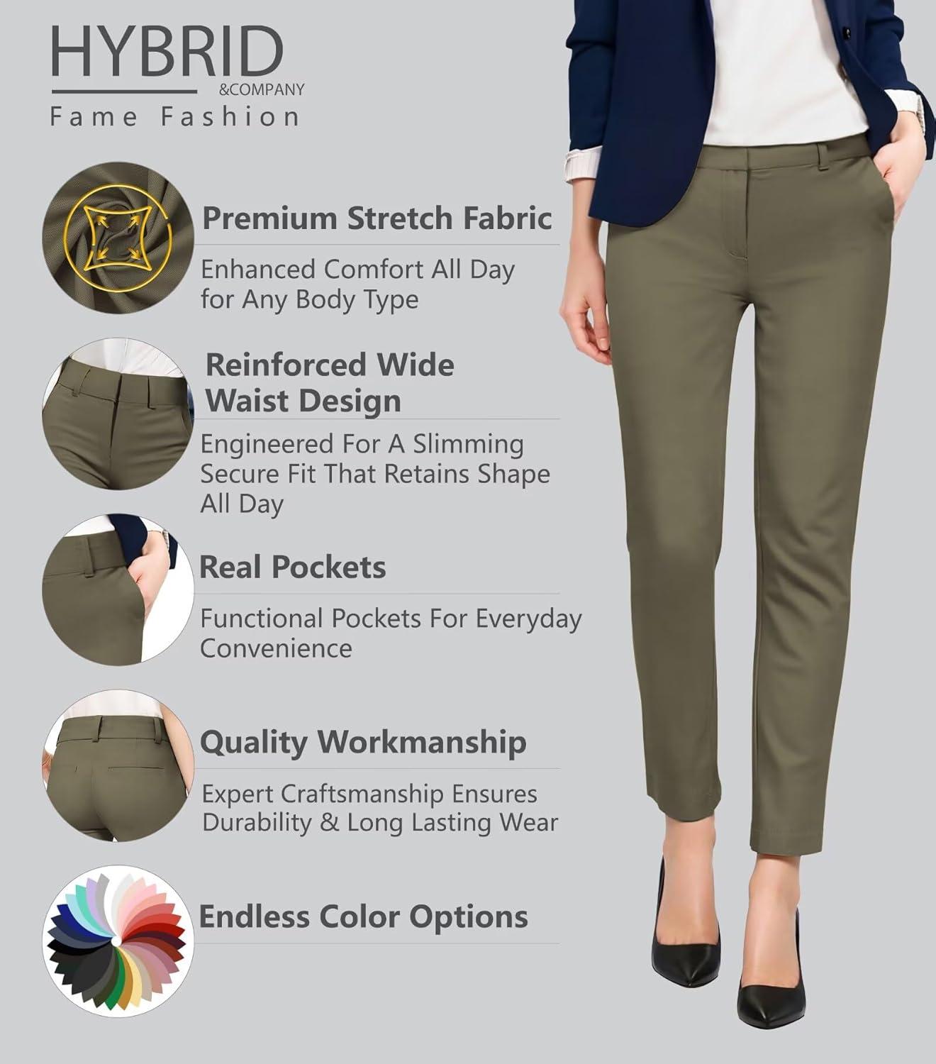 Hybrid & Company Womens Ultra Comfy Stretch Slim Fit Trousers Chino Pants with Pocket(Olive)