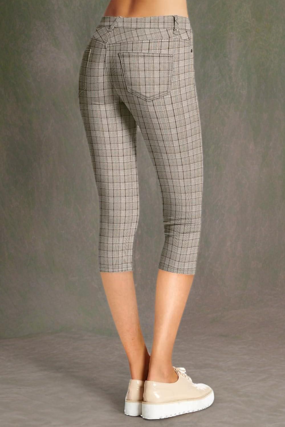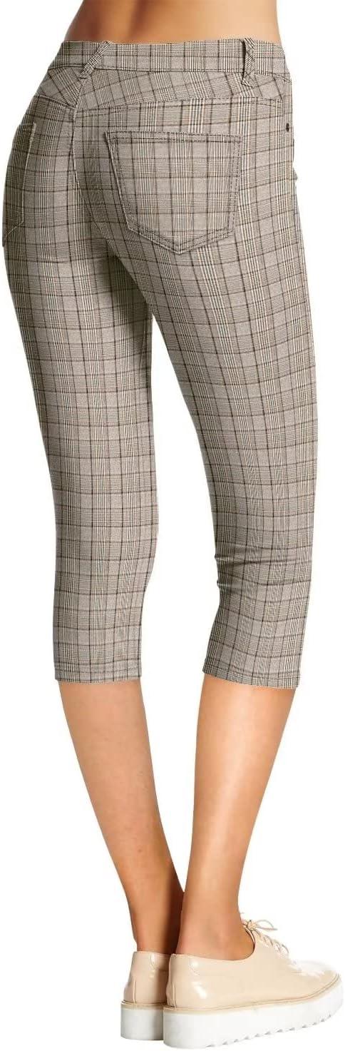 Hybrid & Company Women’s Ultra Stretch Mid Rise Skinny Capri Pants with Pockets(Capri-1405-brownmulti)