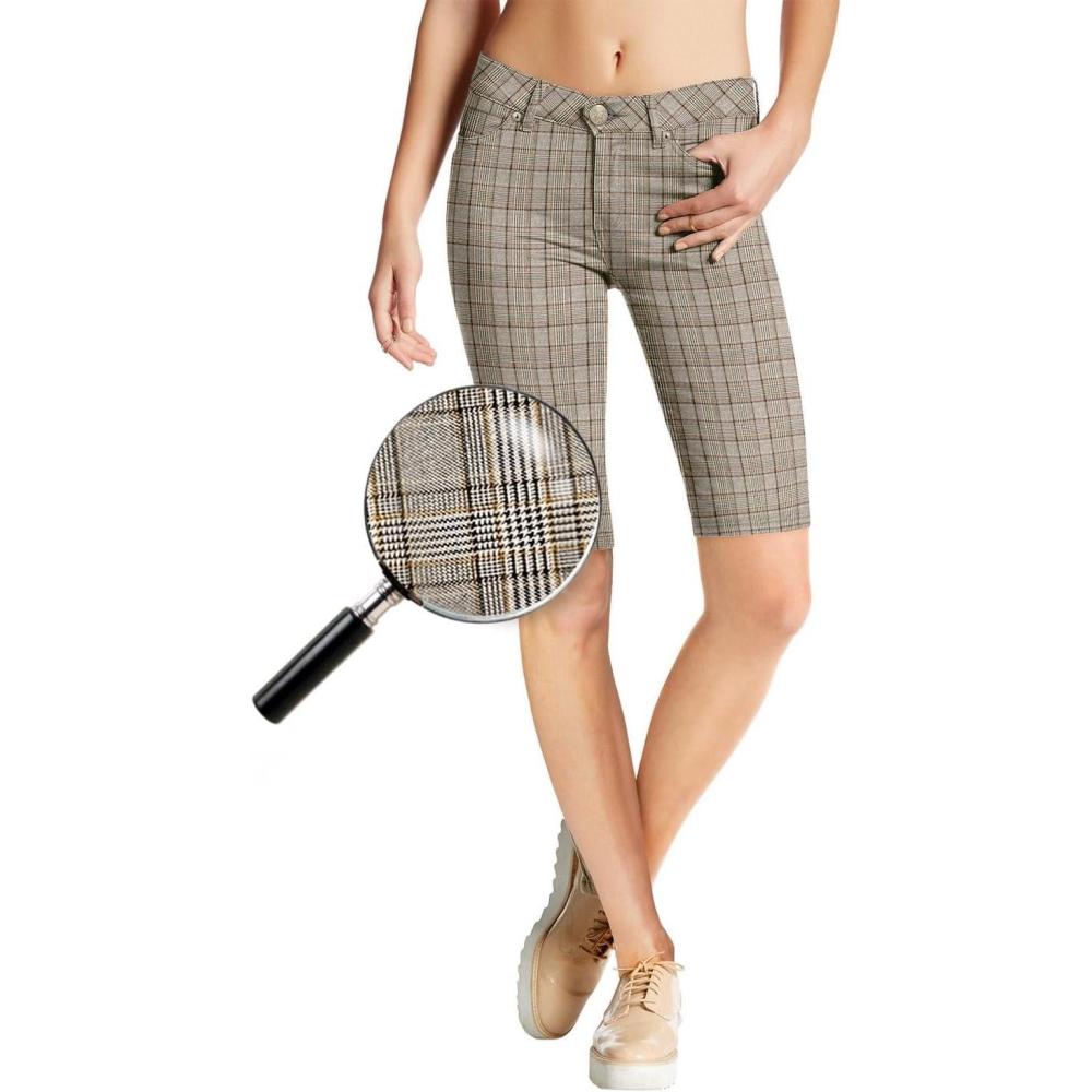 Hybrid & Company Women’s Ultra Stretch Perfectly Shaping Mid Rise Skinny Bermuda Shorts with Pockets(1405-brownmulti)