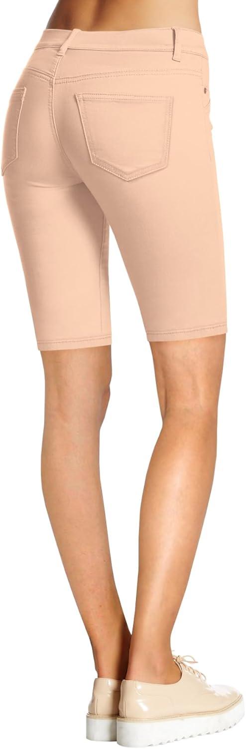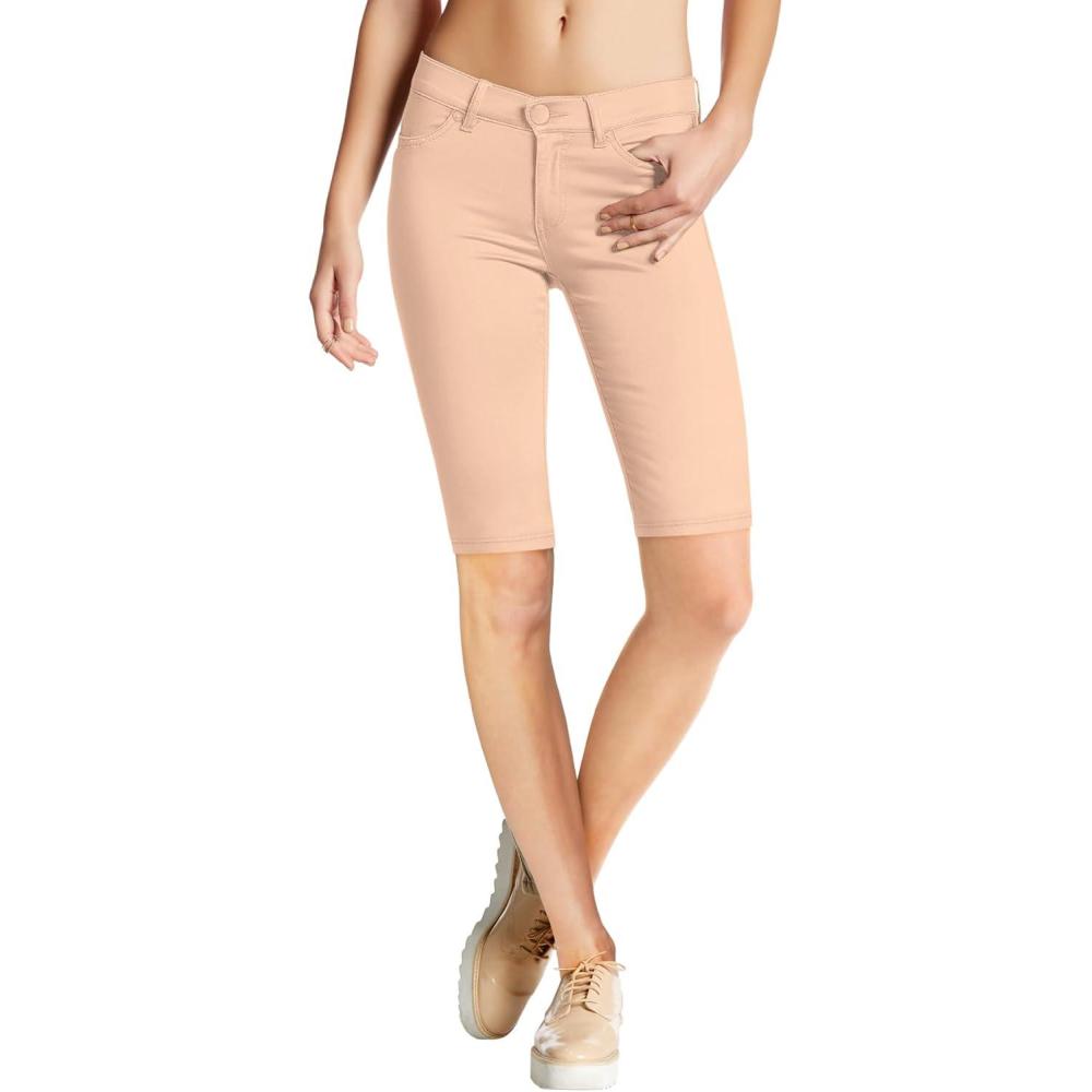 Hybrid & Company Women's Ultra Stretch Perfectly Shaping Mid Rise Skinny Bermuda Shorts with Pockets(Bermuda-peach)