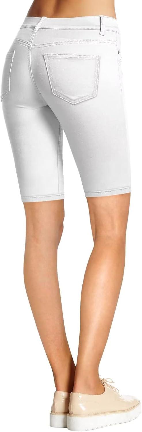Hybrid & Company Women's Ultra Stretch Perfectly Shaping Mid Rise Skinny Bermuda Shorts with Pockets(Bermuda-white)