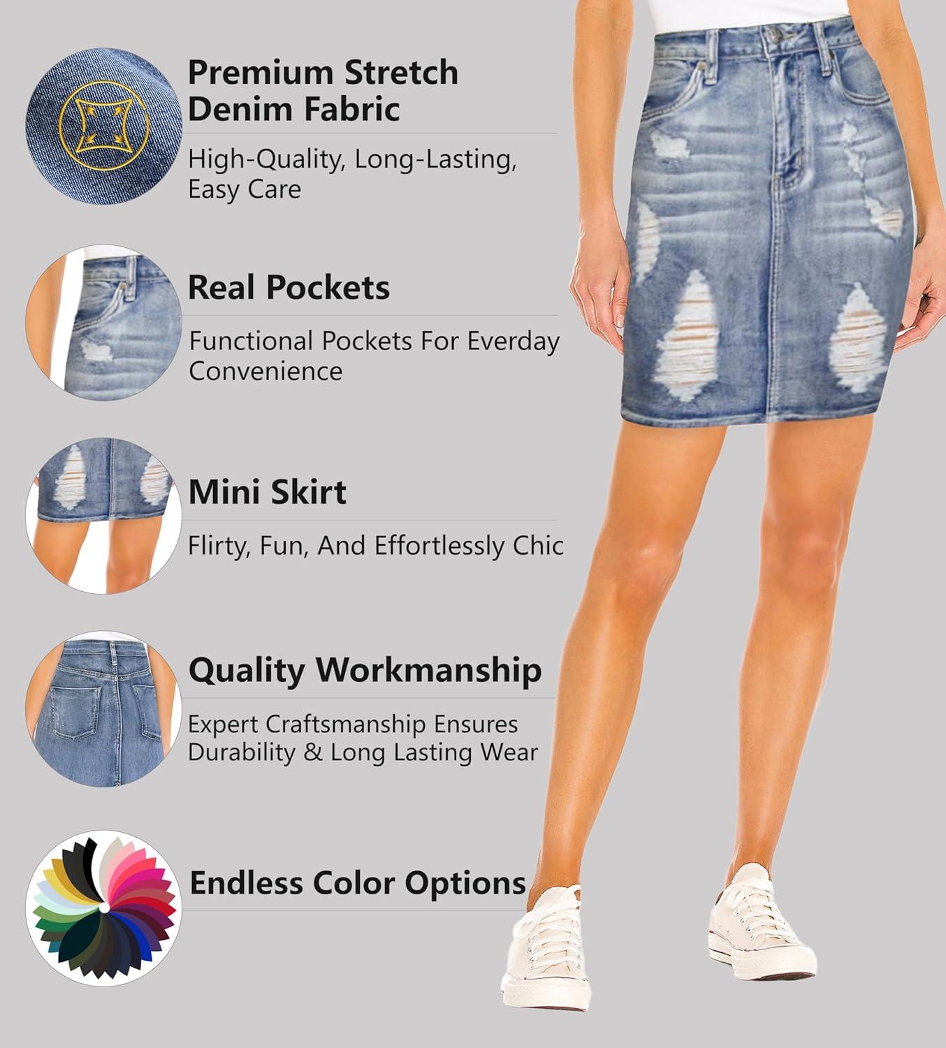 Lexi Womens Stretch Pencil Skirts with Functional Pockets, A Line & Destructed Mini Denim Skirts(Potassium a)