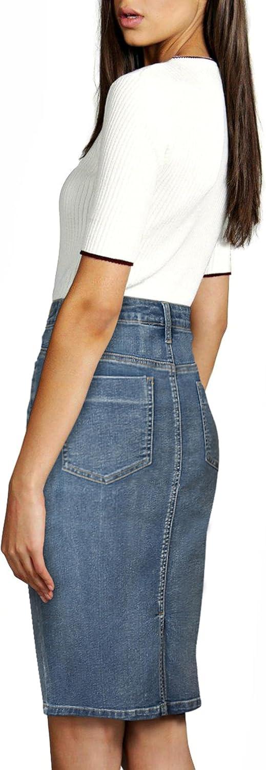 Lexi Womens Stretch Pencil Skirts with Functional Pockets, A Line & Destructed Mini Denim Skirts(Sk22890-potassium)