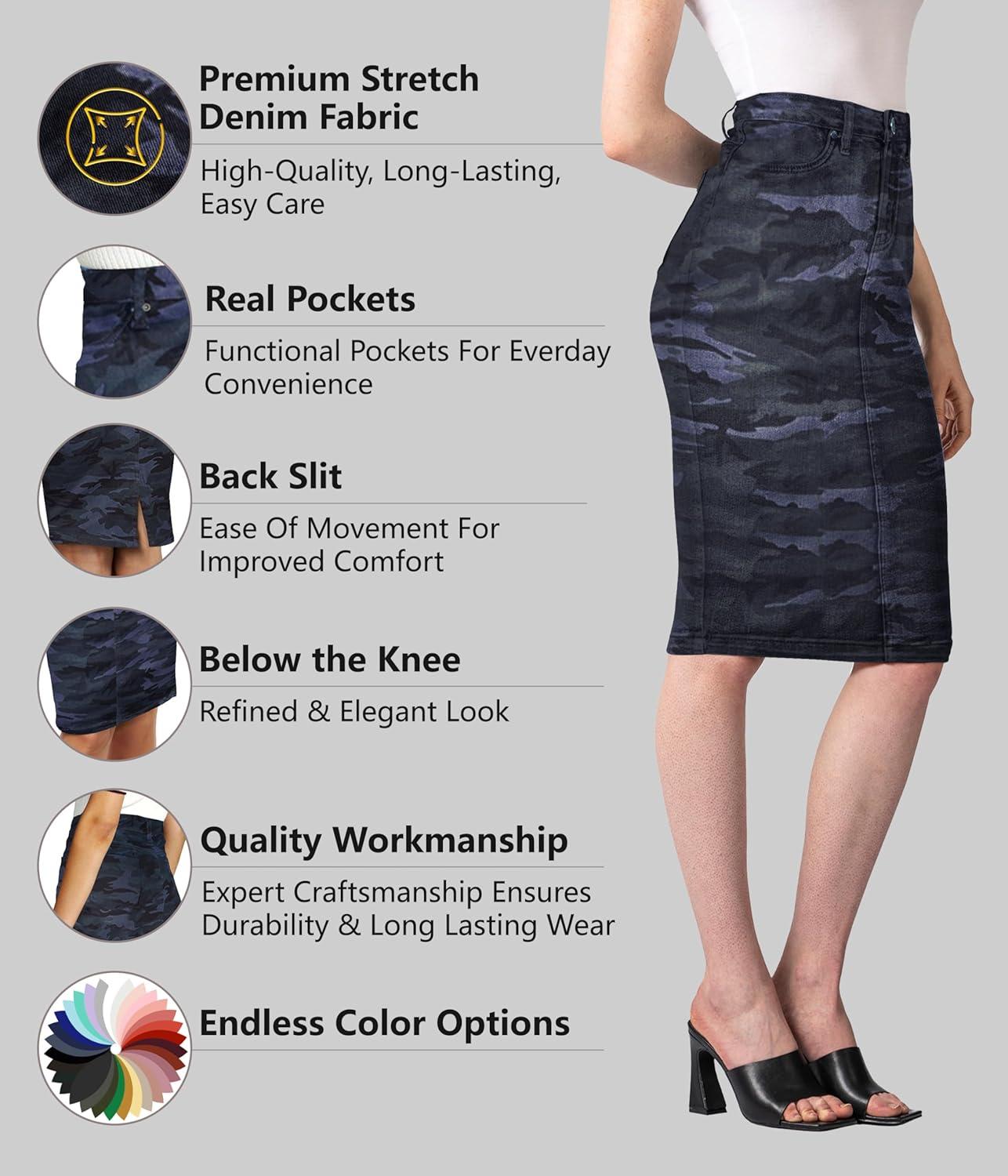Lexi Womens Stretch Pencil Skirts with Functional Pockets, A Line & Destructed Mini Denim Skirts(Sks26147-navyca)
