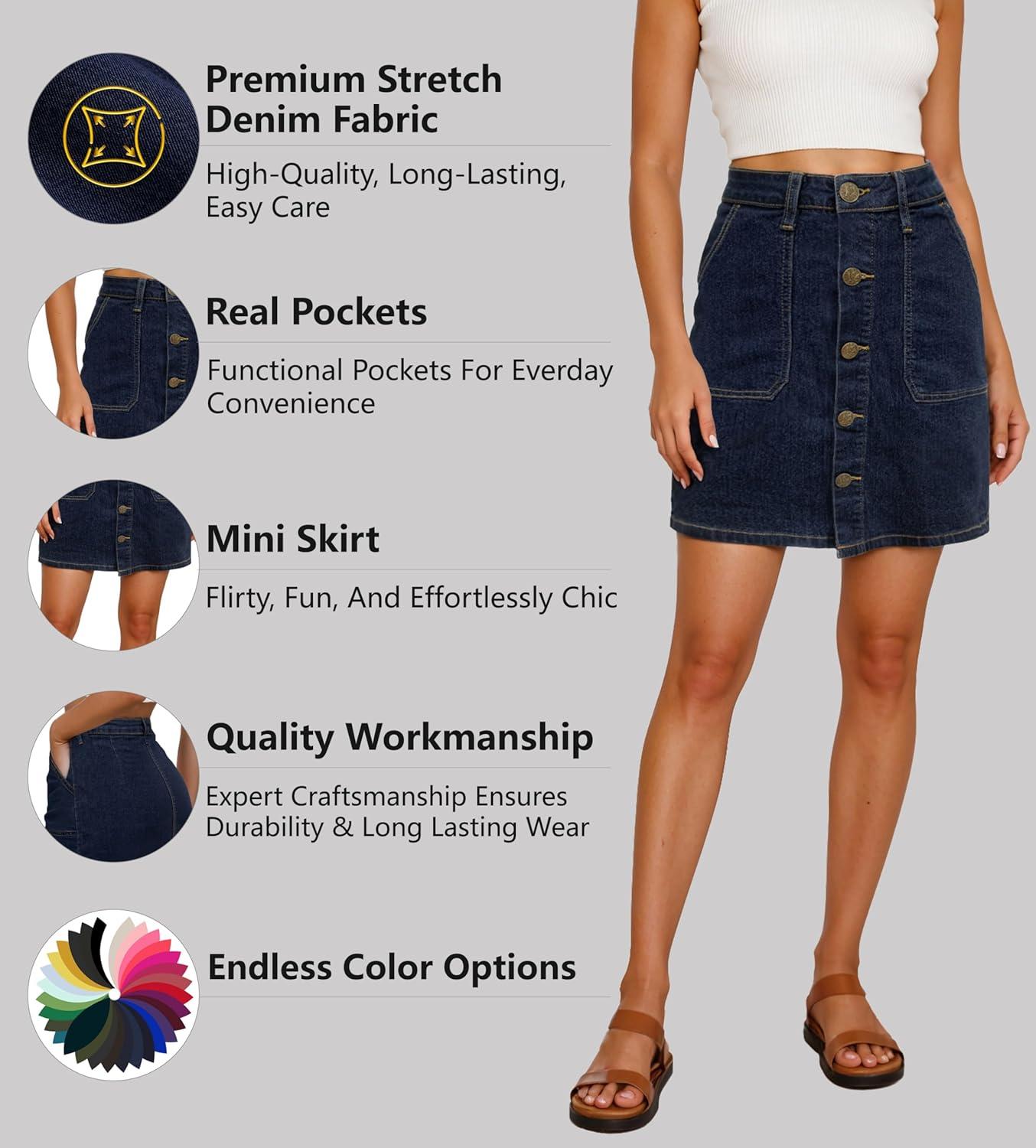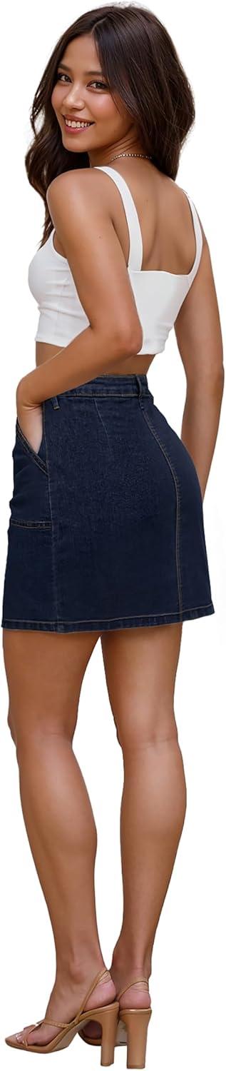 Lexi Womens Stretch Pencil Skirts with Functional Pockets, A Line & Destructed Mini Denim Skirts(Sks48014-indigo)